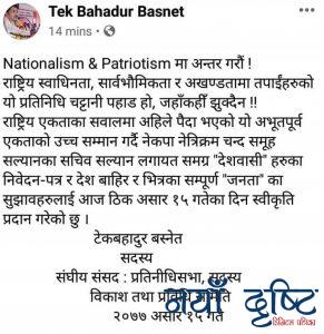 सांसद बस्नेतले फर्काए,विप्लव नेकपालाई जवाफ