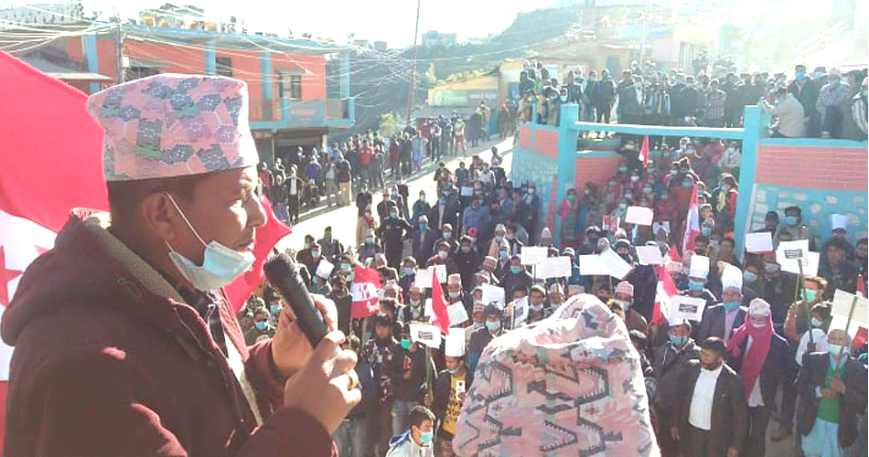 मंसिर २९, सल्यान । सल्यानमा नेपाली काँग्रेसका नेताहरु कम्युनिष्ट पार्टी र ओली सरकार विरुद्ध गर्जिएका छन । सोमबार सल्यान सदरमुकाम खलंगामा भएको सरकार विरुद्धको प्रदर्शन पछि भएको विरोध सभालाई संबोधन गर्दै उनिहरुले कम्युनिष्ट पार्टी र ओली सरकार विरुद्ध चर्काे आक्रोस व्यक्त गरेका हुन ।